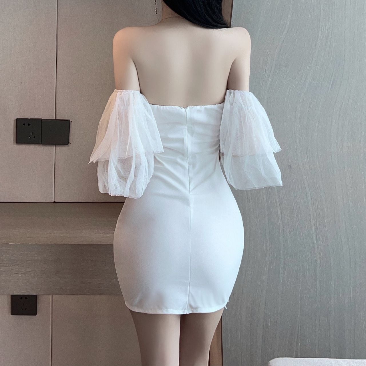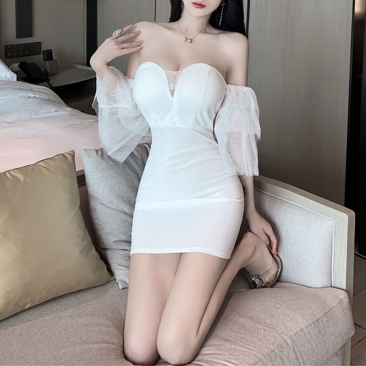 オフショルダー チュール袖ミニドレス 2col 2way L00181