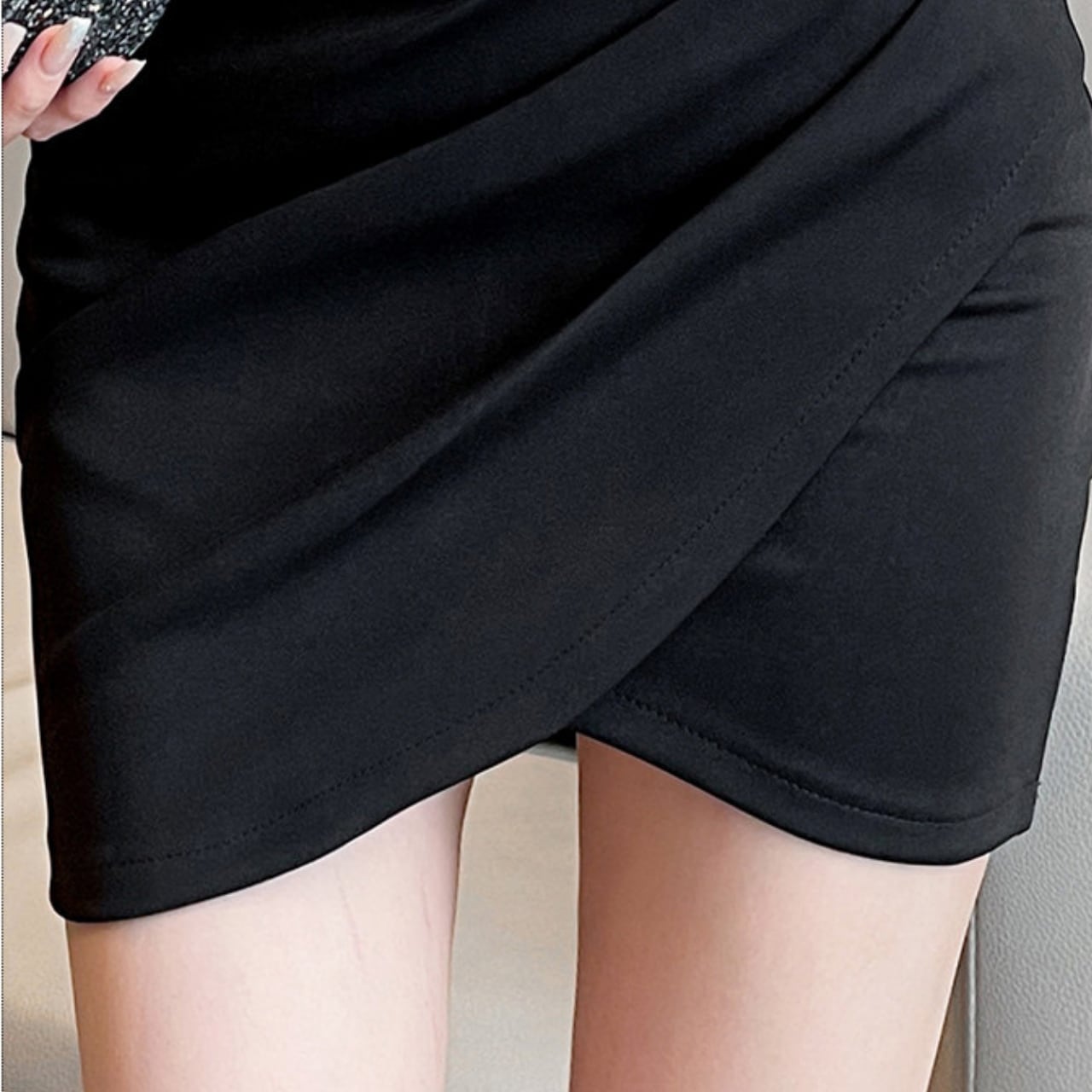 タイトなシルエットとミニ丈で、スタイルアップ効果も期待できる一枚です。