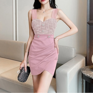 ツイード切替 ボタン ミニドレス 3col L00392