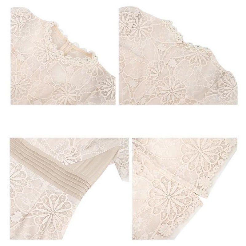 細かな花柄レースがさりげない華やかさを加え、シンプルながらも高級感を演出。