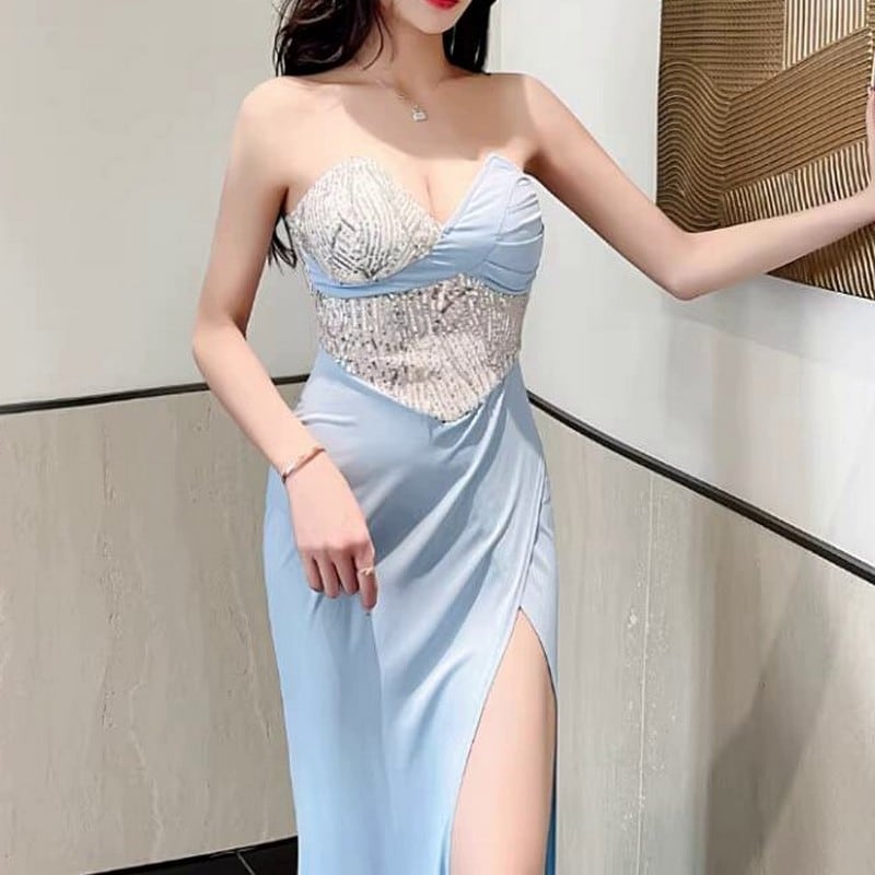 ロング丈ならではの優雅なシルエットが、大人の女性の魅力を引き立て、特別な夜をさらに印象的に。