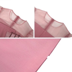 ウエストのプリーツが美しいシルエットを作り出し、リボンが女性らしさを引き立てます。